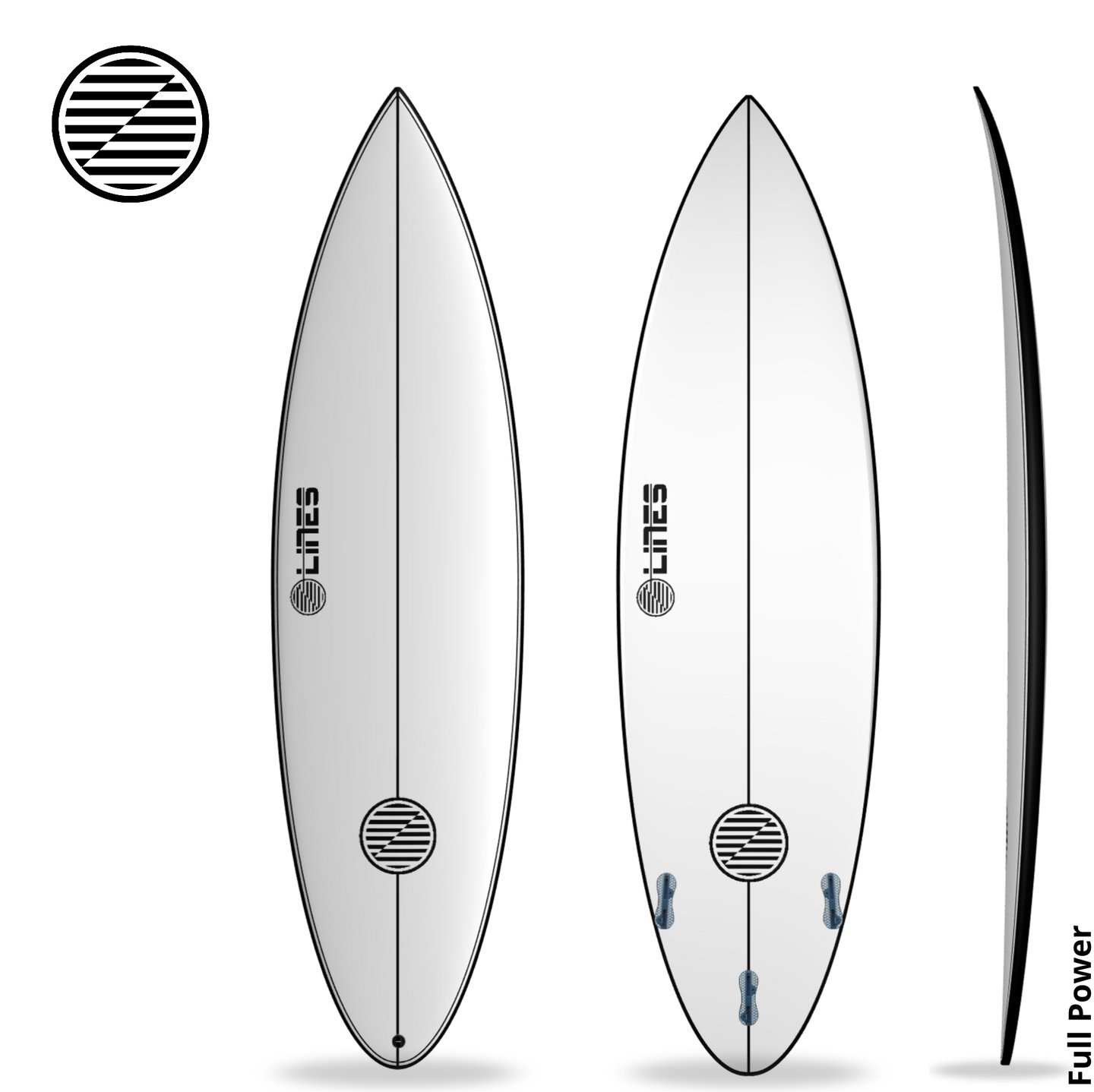 Na Full Power o fundo é completamente Single Concave e as bordas são mais baixas . Esses detalhes, em conjunto com rocker mais acentuado, entregam uma prancha muito rápida em ondas de consequência e segura em situações extremas.